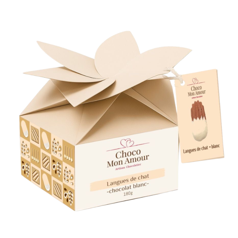 Succombez à la tendresse de nos langues de chat au chocolat blanc, de fins biscuits croustillants nappés d’un délicieux chocolat blanc fondant. Une création artisanale pleine de douceur, parfaite pour les amateurs de sensations sucrées et raffinées.