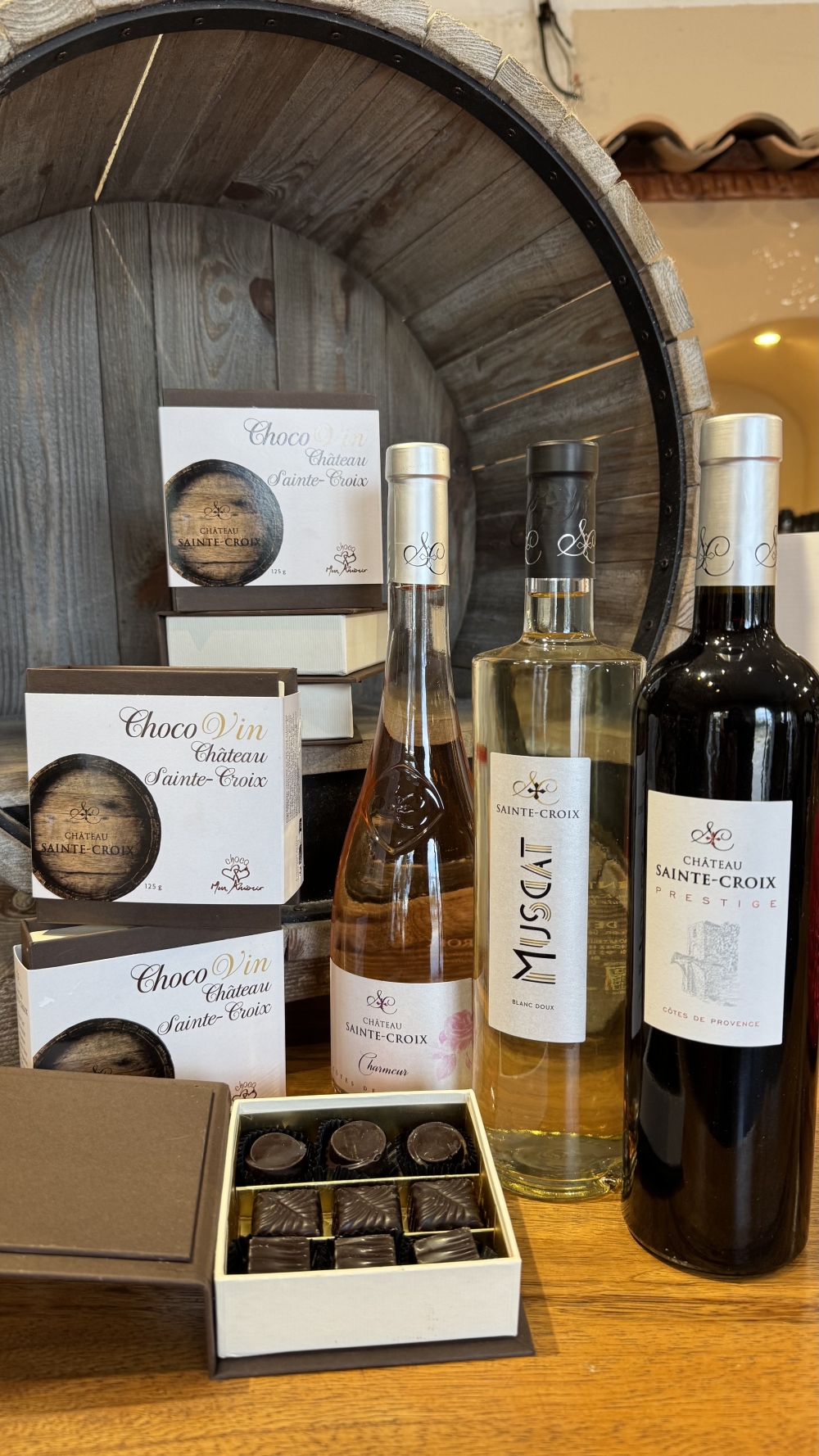 Nous sommes heureux de vous présenter notre toute dernière création : les ChocoVins Château Sainte-Croix, une gamme de chocolats au vin résultant d’une collaboration avec le Château Sainte-Croix à Antibes. Ce mariage audacieux entre deux produits d’exception promet une expérience gustative inédite.