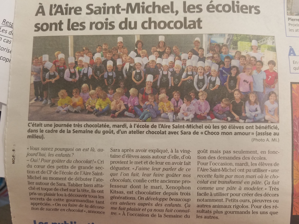 La semaine du goût est une belle initiative. Elle donne aux enfants l'opportunité de goûter à de vrais produits artisanaux, d'apprécier la qualité des aliments et même de mettre la main à la pâte!!! Nous prenons un très grand plaisir à partager notre savoir faire et de guider tous ces enfants dans la création de leur propre oeuvre chocolatée!
