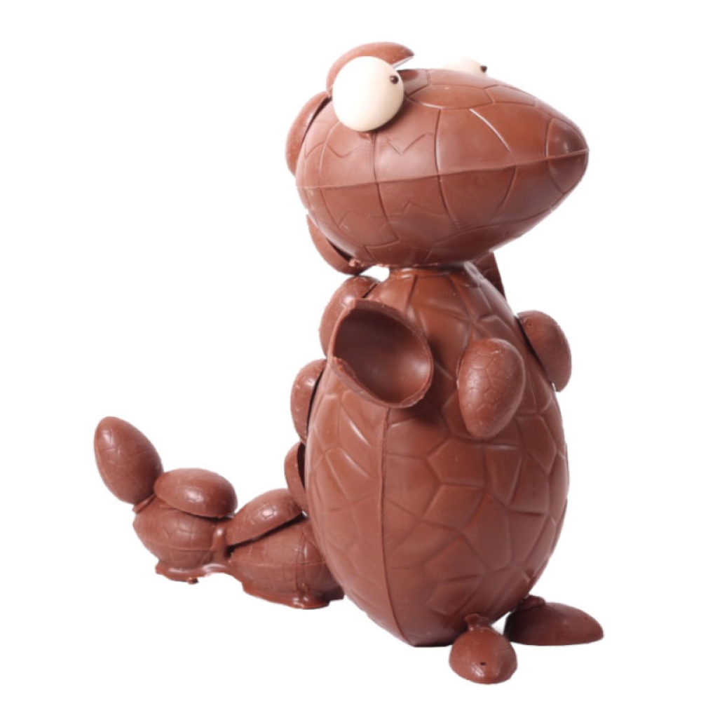 Non, ce n'est pas un fossile. C'est un vrai petit dinosaure ! Si vos enfants sont fascinés par cet animal majestueux, ils seront d'autant plus émerveillés par cette belle version chocolatée. Pour Pâques, offrez-leur un vrai régal de chocolat au lait!