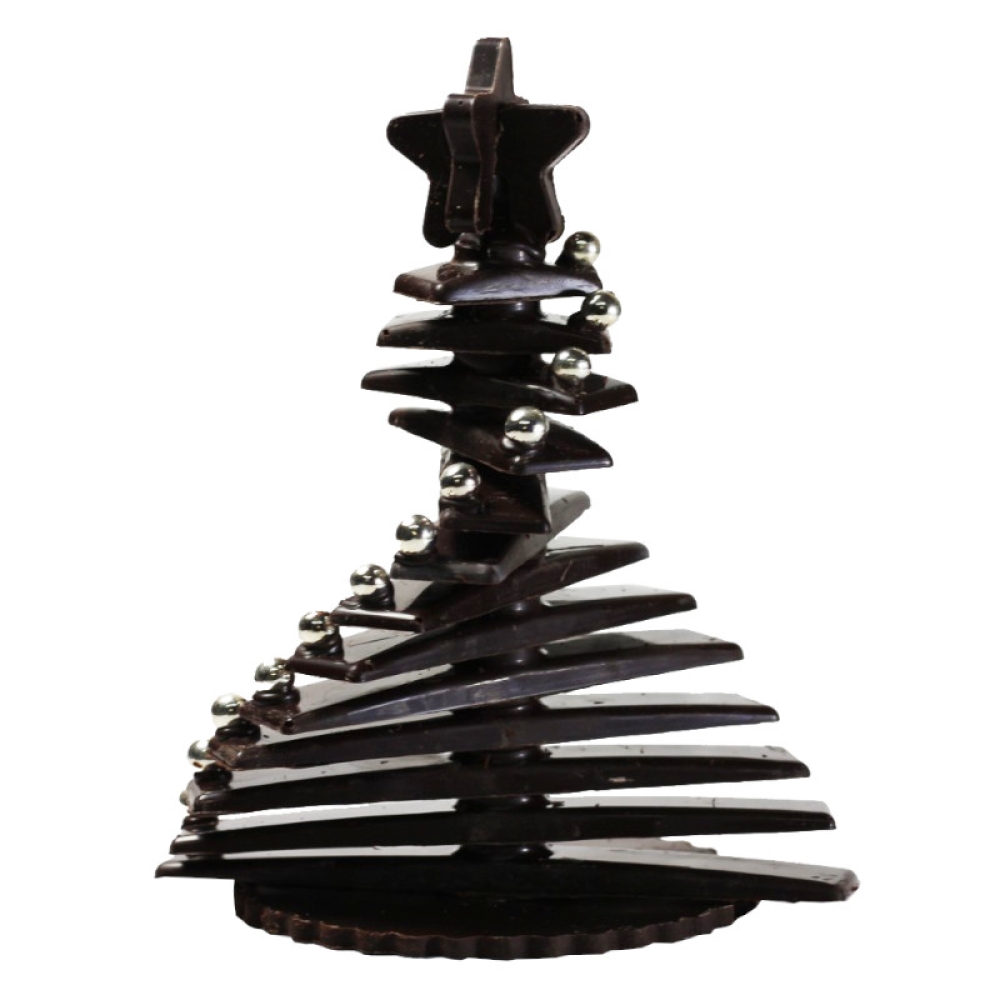 Cette année, revisitez votre sapin avec cette création de Noël originale, en chocolat noir. Sublimé ses perles argentées, ce gourmand sapin en colimaçon séduira les plus raffinés et se mêlera parfaitement à votre décor de table !