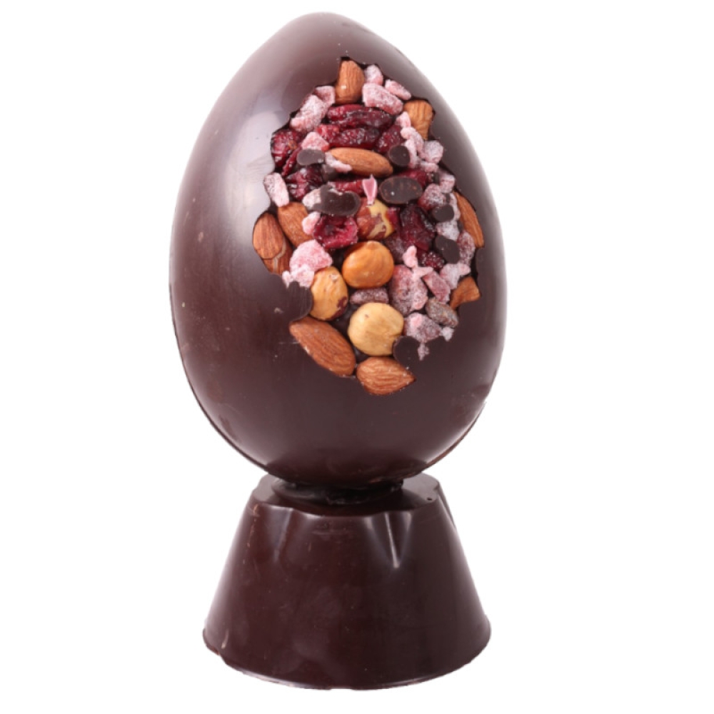 Offrez une expérience gourmande inoubliable avec notre œuf de Pâques en chocolat noir 72% délicieusement orné de fruits secs. Proposez-leur une combinaison exquise de chocolat et de fruits secs (amandes, noisettes, raisins secs, fraises séchées et cranberries). La texture croquante et le goût intense de cet oeuf est une véritable délectation pour tous les amateurs de chocolat. Parfait pour offrir en cadeau ou pour agrémenter sa table de Pâques.